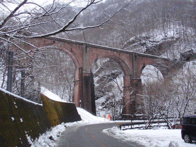 昨日の話になりますが、昨日は高速道路の割引があるということで、出かけてきました。 車で移動しましたが、観光目当てなところもありましたが鉄道を中心に撮影しました。 そのときの写真を何枚か載せておきます。 まず、新前橋駅の歩道橋から撮影。信号機邪魔でしたね。 次に、近くにあった操車場も撮影。かなり無理しています。 次に、敷地外から。これではあまりよく分かりませんね。 移動中に見つけた信号機。矢印信号が通常のものより大きくなっています。ただ、写真だと分かりにくいですね。 次に横川駅に移動。釜飯を食べるついでに鉄道文化村を撮影しました。ただ、時間が無かったので中には入っていません。 さらに山奥へ。そうすると有名なめがね橋がありました。 下から見ると大きいですね。 めがね橋に登れるようなので登ってみました。そうすると、少し離れたところにも電車の鉄橋がありました。 ちなみに、この日は雪が深かったです・・・。 このあと、軽井沢方面に抜けて高速道路に入りましたが、山を登るにつれて雪が深くなり、かなり焦りました。雪道用タイヤだったので、大丈夫だったけど・・・。 最後に、一緒に来てくれた、ハムコ201さん、おおつさん、ありがとうございました。この場を借りてお礼申し上げます(?)